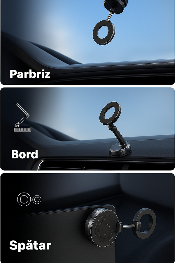 Asigură-ți telefonul cu un suport magnetic ce oferă fixare fermă și acces ușor, îmbunătățind siguranța și confortul în trafic.